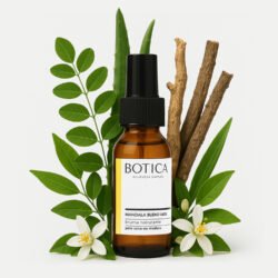 Mandala Blend Vata é como uma bruma suave, um hidratante facial líquido que tonifica e nutre a pele após a limpeza, composto da mais pura água floral de rosas, enriquecida com aloe vera e medicada com extratos botânicos de alcaçuz, moringa, ashwagandha e perfumada com o raro e delicado óleo essencial indiano de néroli, para proporcionar hidratação e nutrição à pele do tipo Vata que tende ao ressecamento, perda de nutrientes, formação de manchas e melasma.