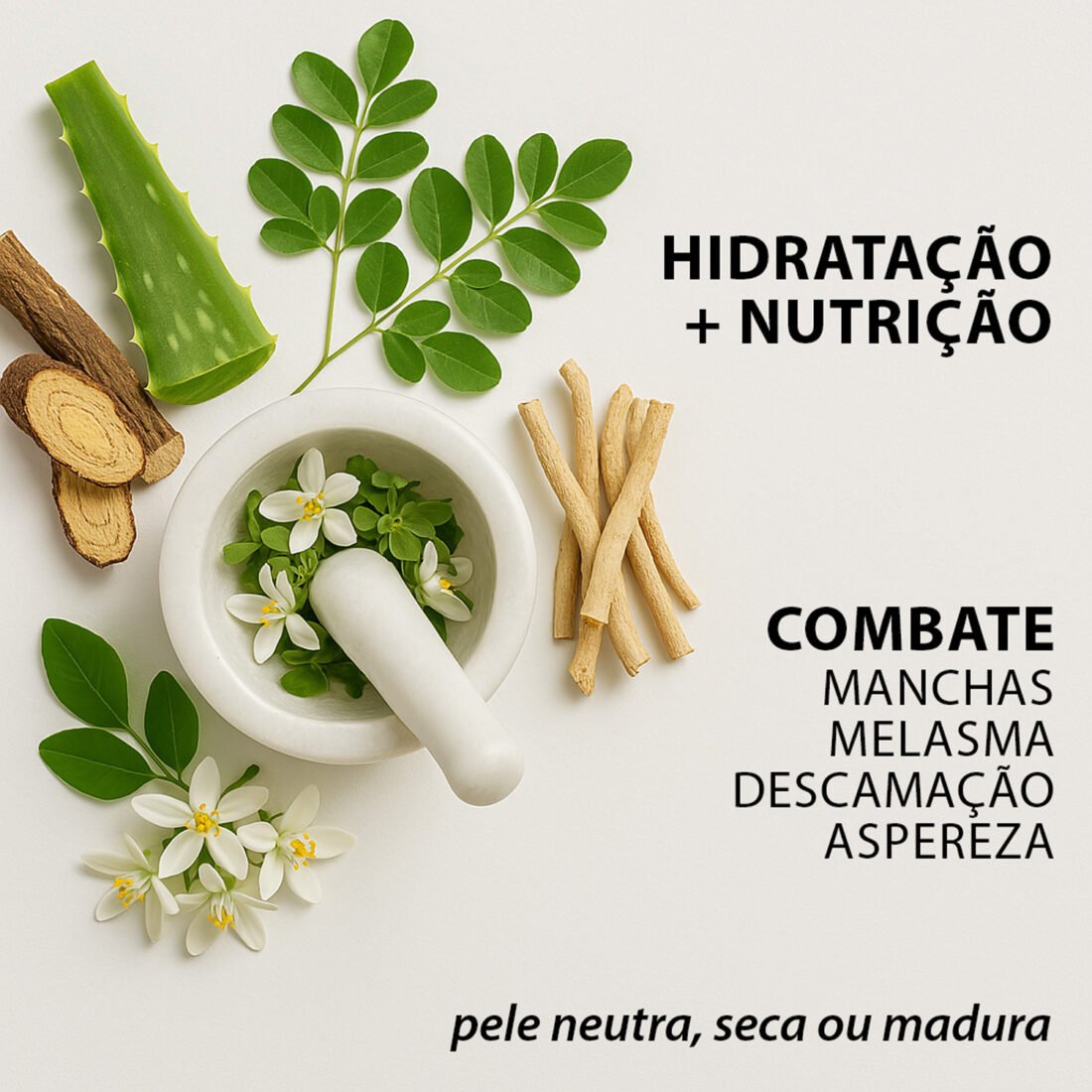 O extrato de moringa ainda é conhecido por ser uma boa fonte de ácido oleico, ácido graxo monoinsatmurado que ajuda a combater a perda da umidade da pele, o que é ótimo quando o assunto é manter a pele hidratada. Um verdadeiro amigo das peles ressecadas!