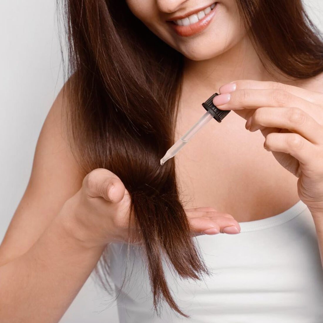 Nos cabelos: hidrata, dá brilho, maciez, diminui o frizz, pontas duplas e a queda de cabelo.