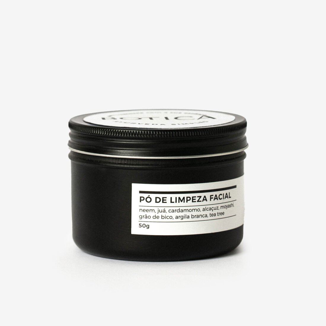 O pó de limpeza facial é um blend herbal aromático de neem, alcaçuz, cardamomo e tea tree, com moyashi, argila branca e grão de bico, uma fórmula suave que limpa sua pele sem agredí-la ou alterar seu ph natural. O uso regular torna a pele sedosa e uniforme, reduz visivelmente os poros, comedões, manchas e controla a oleosidade.