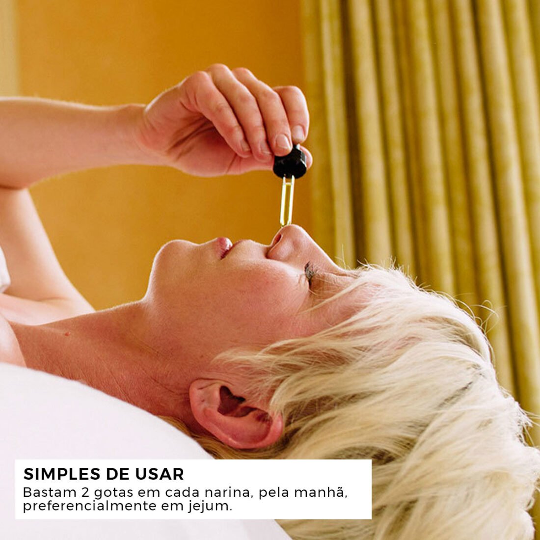 Pela manhã e preferencialmente em jejum, com a cabeça inclinada para trás, coloque 2 gotas em cada narina, aperte as narinas por alguns segundos, solte e respire lenta e profundamente, em seguida aplique uma vigorosa massagem no rosto, em especial sobre os seios nasais ou use conforme orientação do terapeuta. O óleo deve lubrificar toda a cavidade nasal, você pode sentir parte do produto escorrendo pela garganta, é normal e não requer nova aplicação. Recomenda-se a exposição ao sol matinal ou pratica de atividade física após a aplicação.